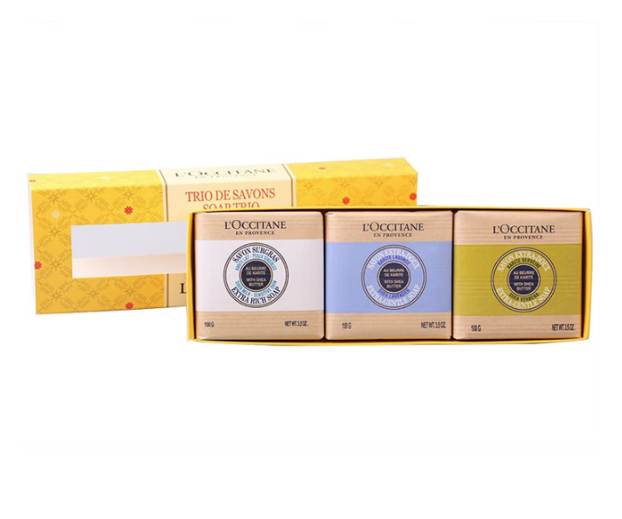 欧舒丹乳木果马鞭草味洁肤皂100G X 3块 包装材质:FSC环保纸 包装尺寸:22 x 7 x 2.8cm