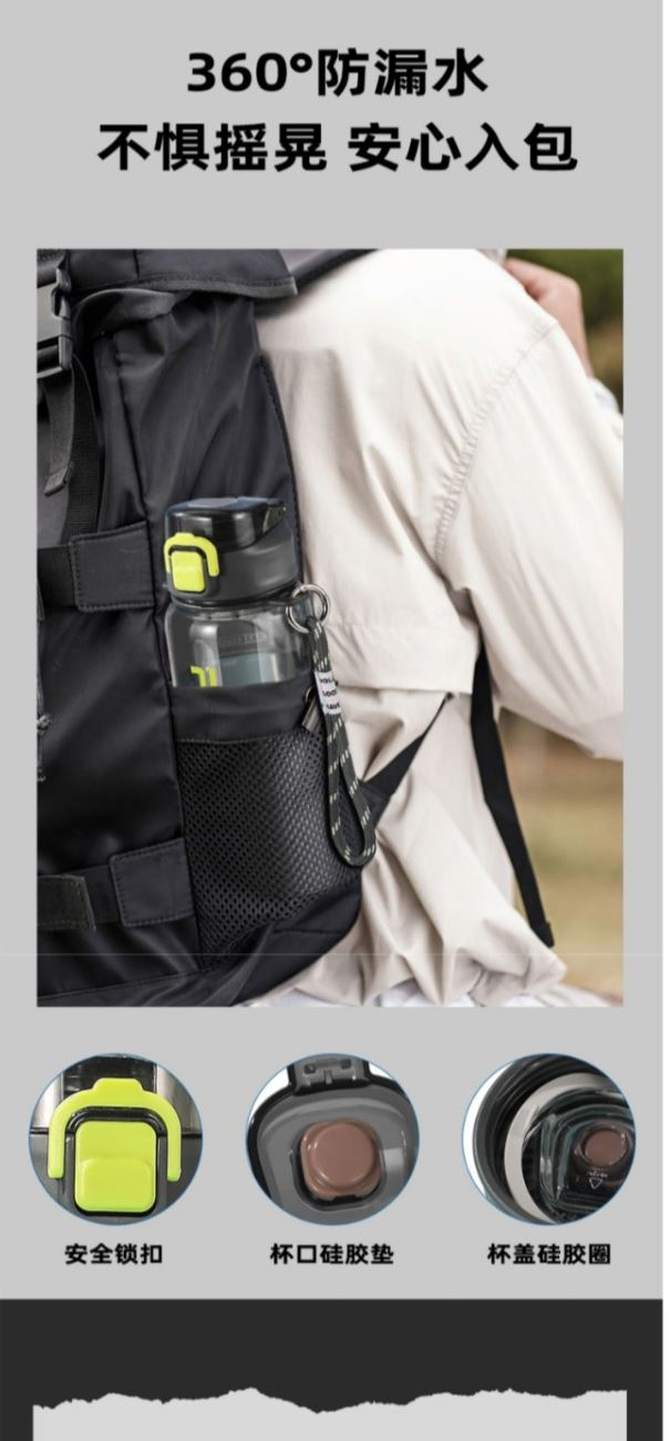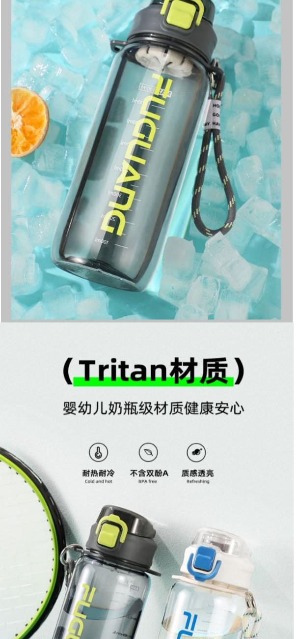 容量:700ml 颜色:灰色 白色 紫色 材质:美国FDA公认安排的塑料材质TRITAN, 不含双酚A,婴幼儿安全级别,使用更放心 包装:单瓦盒包装