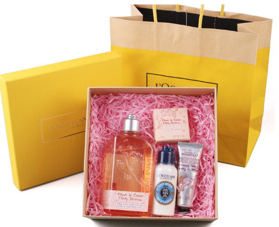 商品简介 欧舒丹甜蜜樱花沐浴250ml 欧舒丹甜蜜乳木果身体乳75ml 欧舒丹甜蜜樱花护手霜30ml 欧舒丹甜蜜樱花香氛皂50g 欧舒丹礼盒纸袋