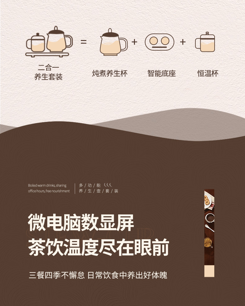 600ML炖煮养生杯+400ML恒温杯二合一;