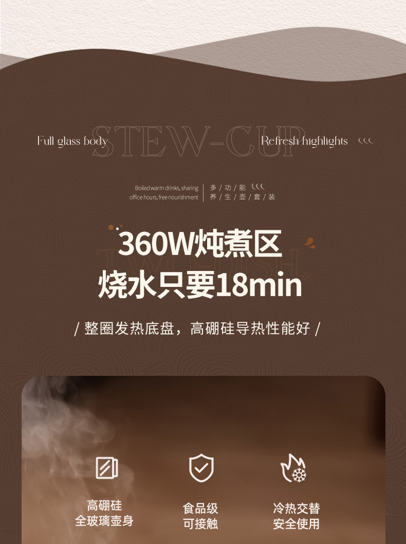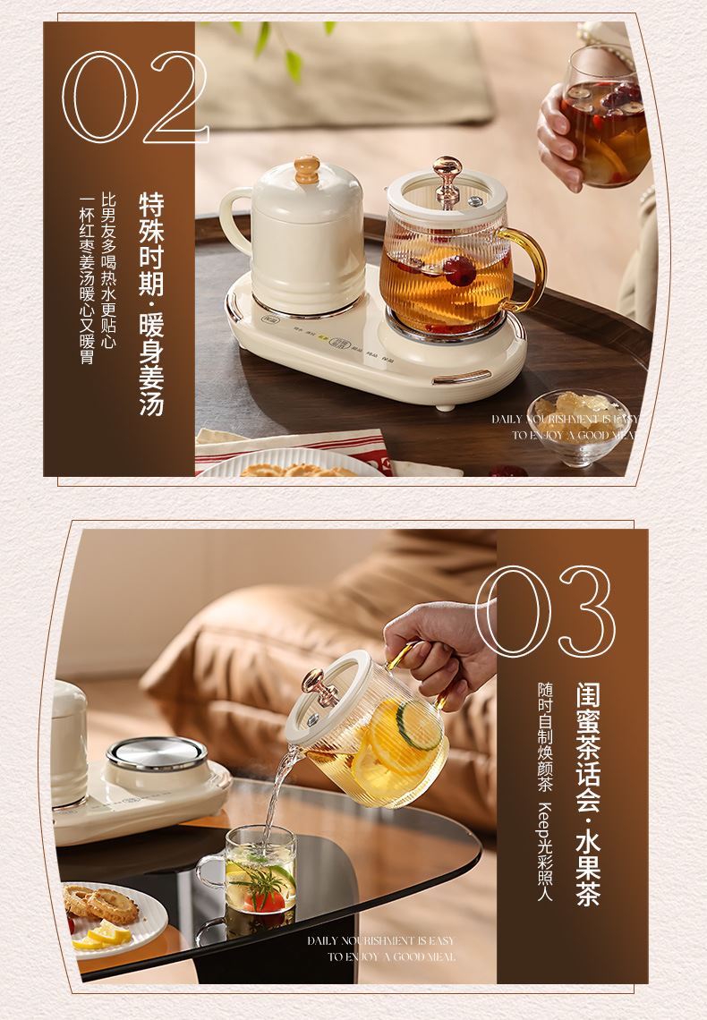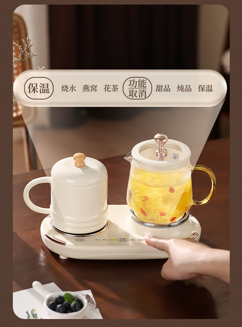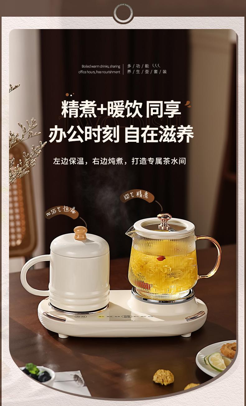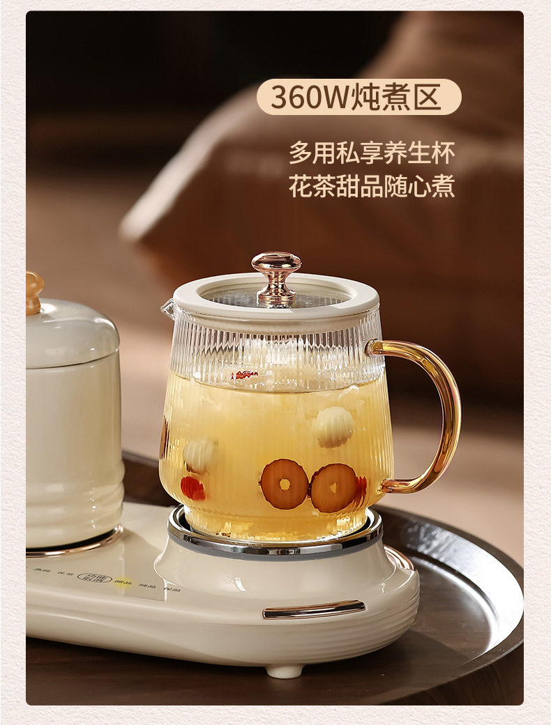 双底座养生壶炖煮二合一,左边保温,右边炖煮同享;