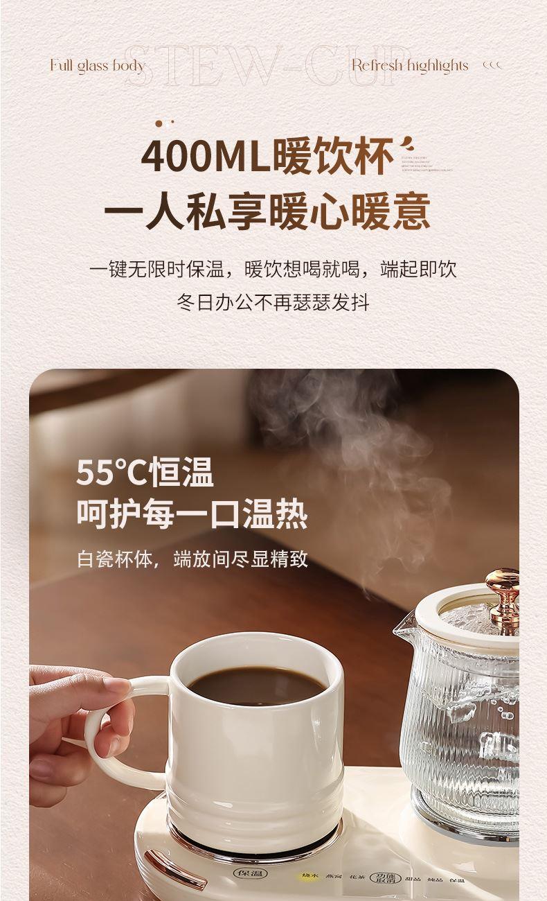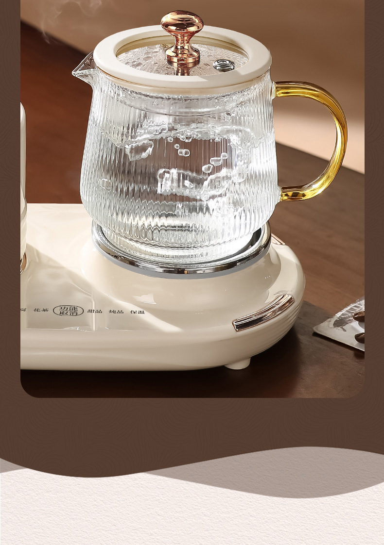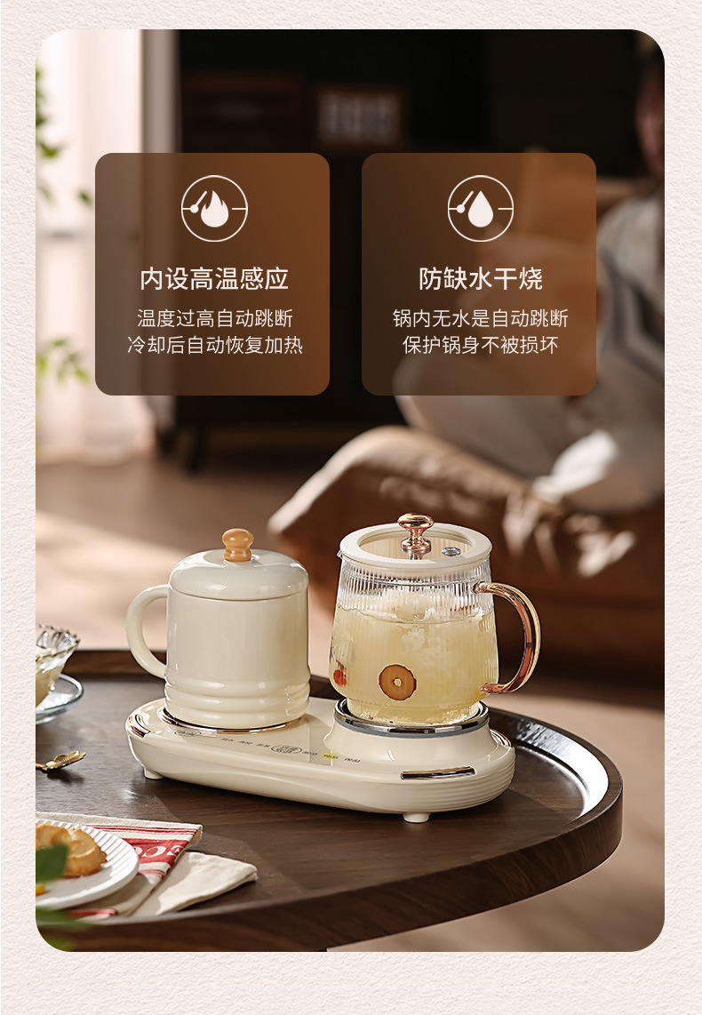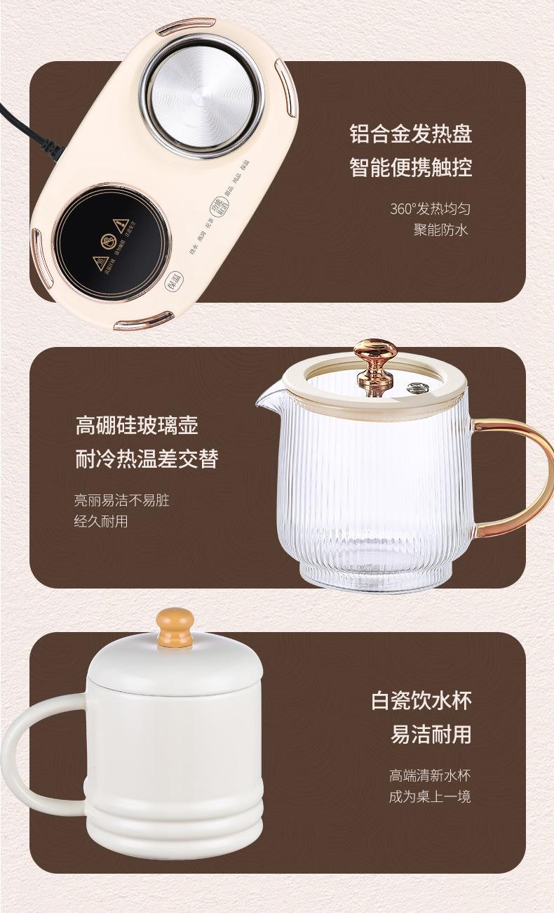 高硼硅玻璃壶+白瓷饮水杯,高温防干烧自动断电;