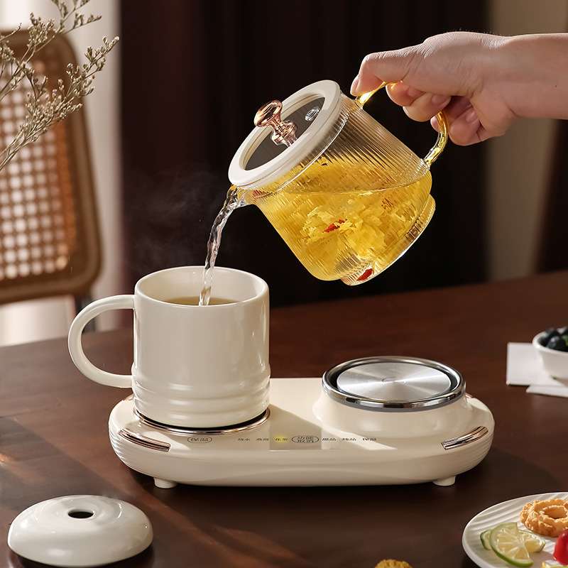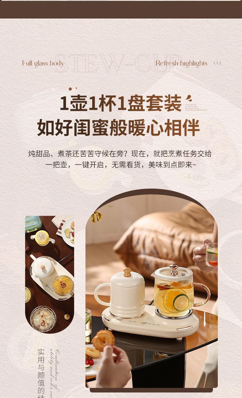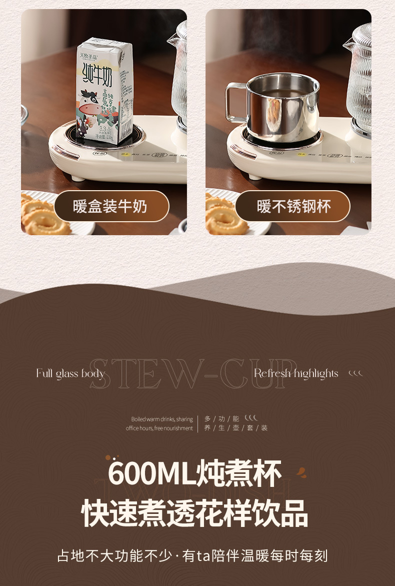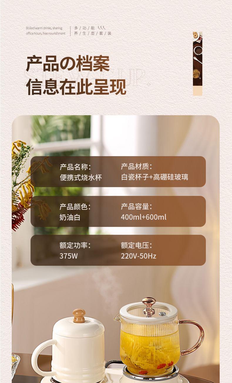 高硼硅玻璃壶+白瓷饮水杯,高温防干烧自动断电;