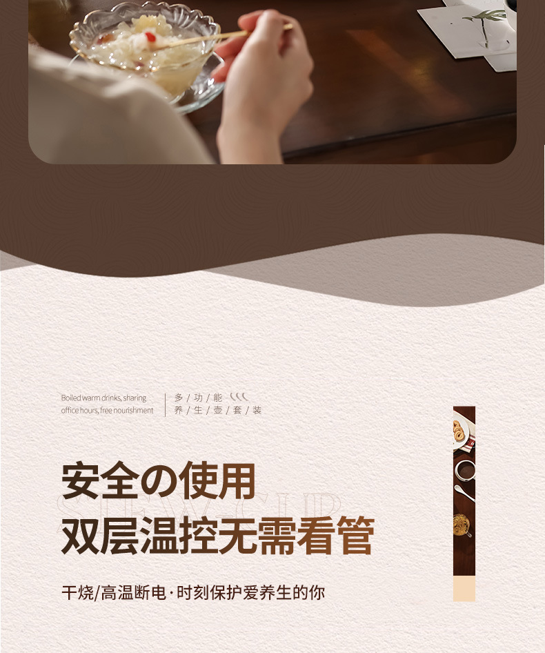 自动断电,防干烧功能;一机多用,可用于婴儿暖奶及保温;