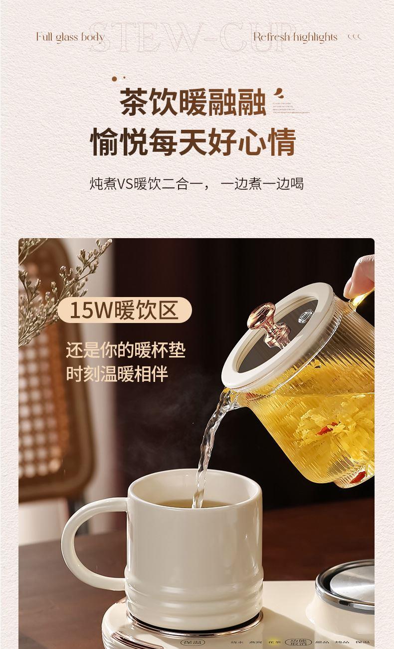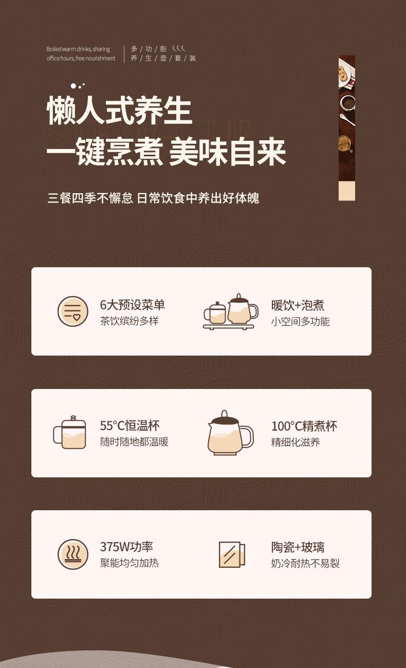 1壶1杯一套装,6大预设功能,15W暖饮,375W;