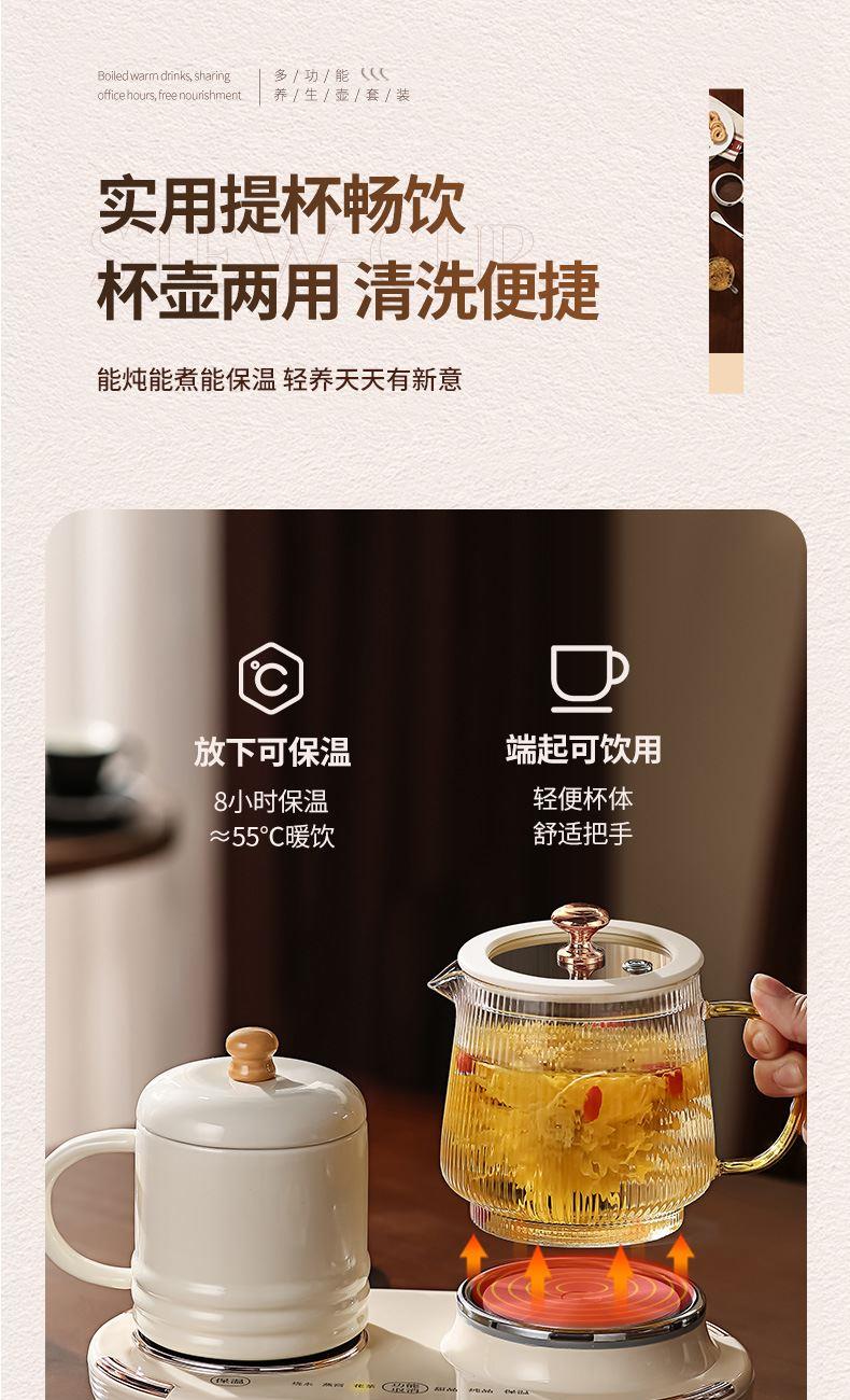 分体式养生壶杯壶,清洗方便,提壶即饮;