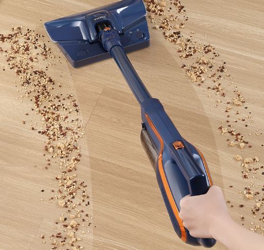 1:过滤系统: HEPA过滤 电压: 220V ~50/60HZ 2:产品功率:650W 真空度: 16KPA 尘桶容量: 0.8L 3:颜 色:轻奢蓝金 净重/毛重 : 1.7 / 2.0 KG 4:KZ-VC11-蓝金色—1拖布+水箱