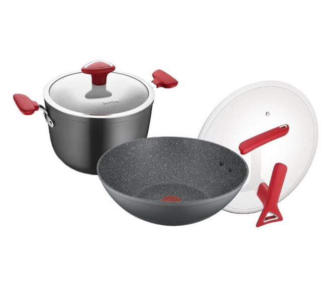 1.计师倾心之作,外观简约风,现代美,时尚好品质, 2.采用铝合金材质,外表面星星石不粘材料, 3、火红点智控温,油温可见,下菜时机易掌控,菜品色泽好,口感佳, 4、底厚壁薄,导热均匀不易焦糊,星星石不粘涂层,健康不粘,烹饪更放心,健康与美味同行,且易清洁, 5、一体化流畅曲线,不对称盖头,灵动优雅,可立可视玻璃盖,拿取便捷轻松收纳, 6、不挑炉灶,适用多种热源,质感细节,成就一口好锅