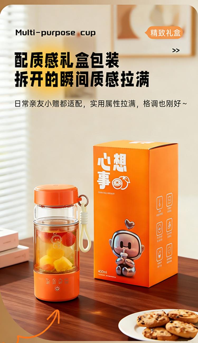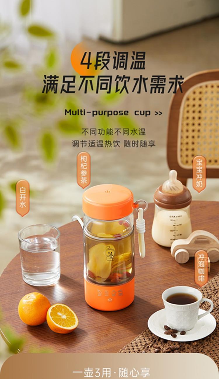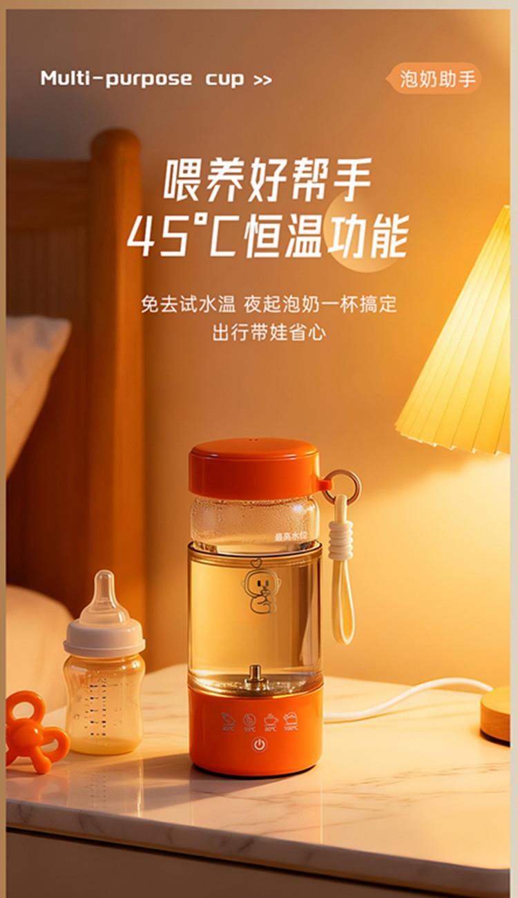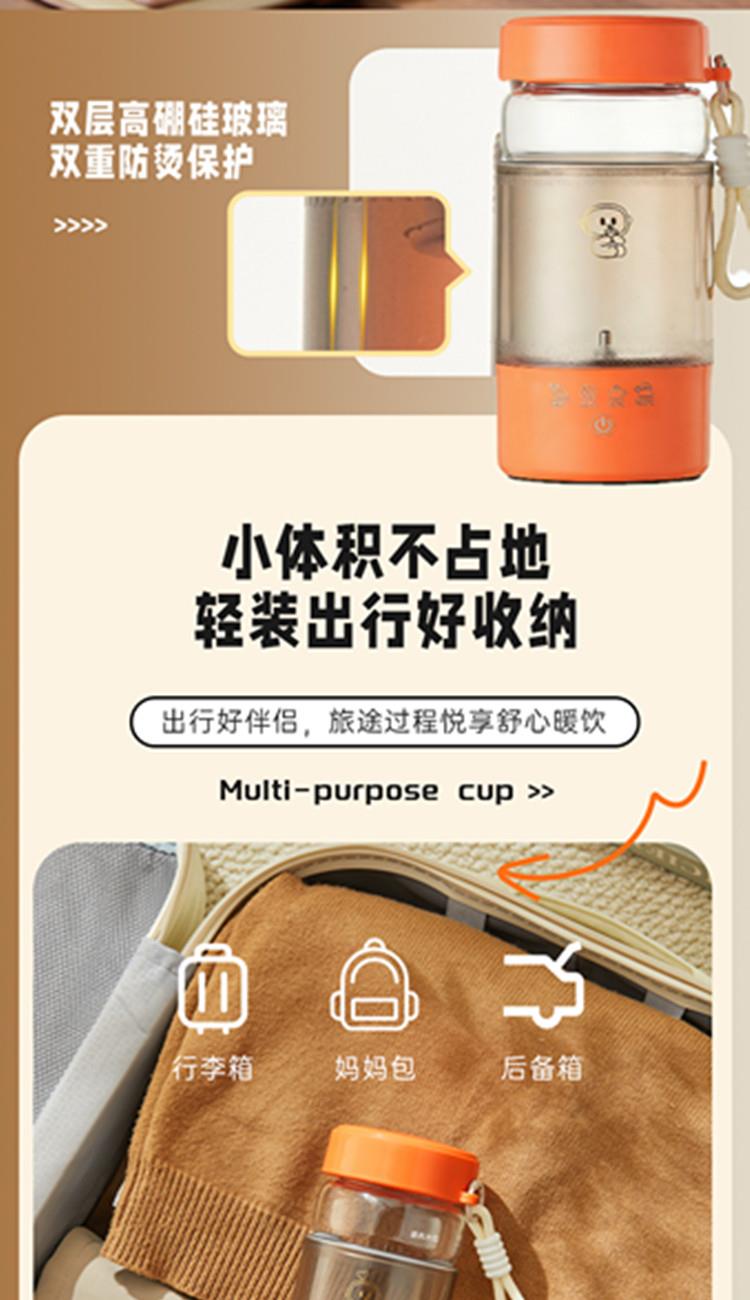 1、450ML大容量,食品级304不锈钢发热盘,整杯0涂层。硅胶防水槽,安全水位标识。