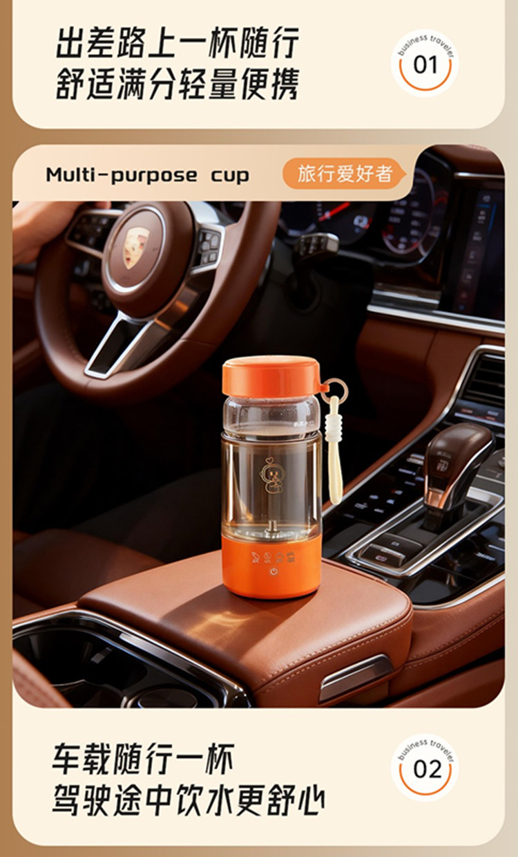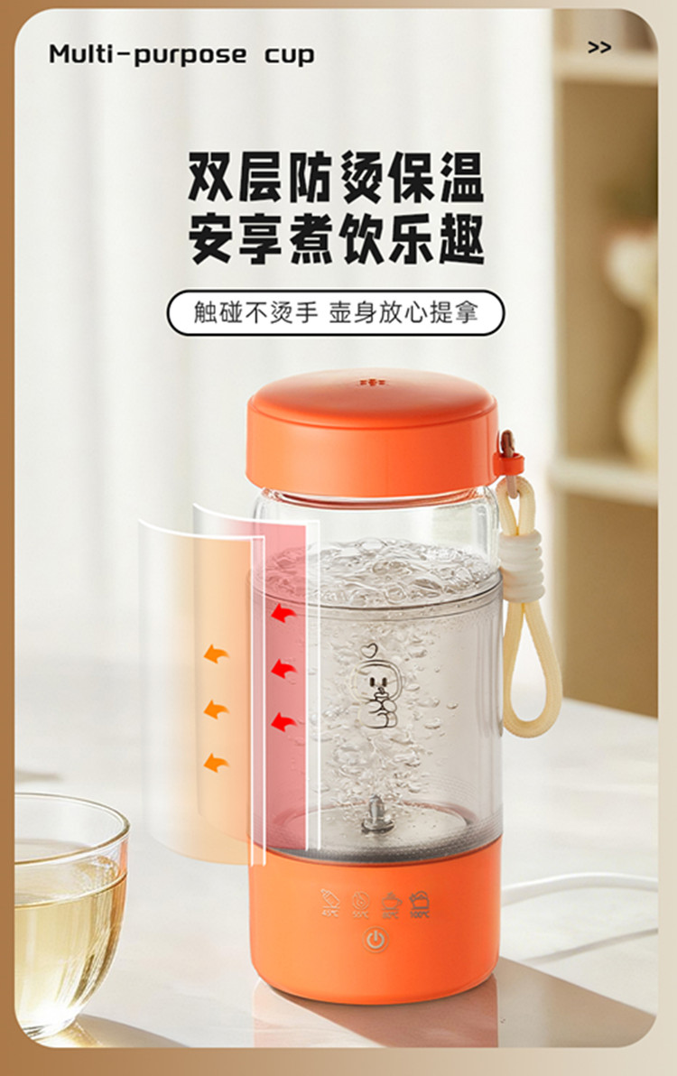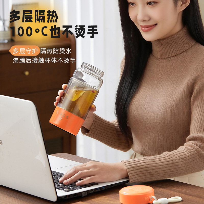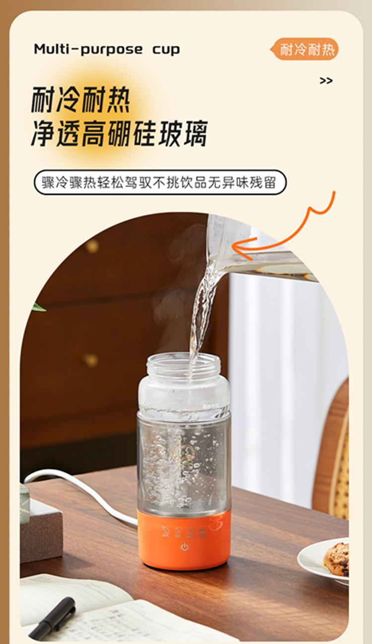 泉尔思便携式电热水杯(单杯)DSB-04DB玻璃内胆
