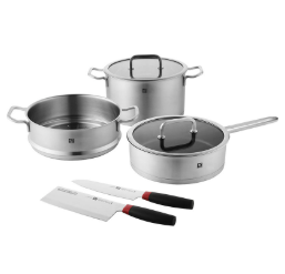 1:产品货号:66200-014-922 2:产品参数:Moment 24cm 涂层煎炒锅*1、Moment 24cm 汤锅*1 3:Passion 24cm 蒸笼*1、Zwilling Now S 中片刀*1 4:Zwilling Now S 多用刀*1