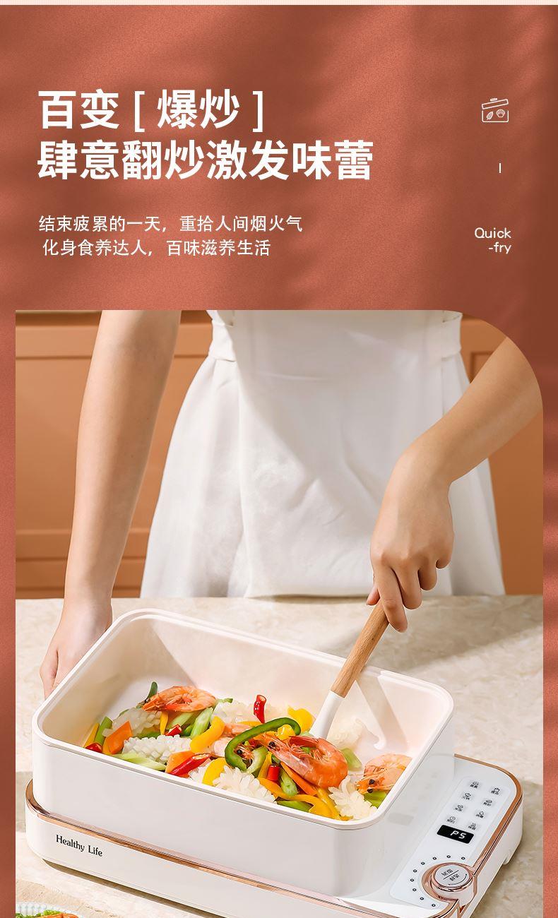 产品功率:1350W 产品容量:底锅4L+两层蒸笼8L,总12L 产品颜色:绿色 产品款式:4L蒸笼自有组合 包装清单:主机、透明盖、蒸格、电源线、说明书 蒸格尺寸:330*220*72mm 底座尺寸:380*230*130mm 特色功能 1、巧设导流孔蒸格,科学排水不浸水;底部多孔散热,保证烹饪安全; 2、可视化蒸盖,烹煮过程更好掌握火候;镀金提手,隔层隔热不会烫手; 3、可分离电线,清洗方便,安全使用;主机容量4L,蒸笼自有组合; 4、1350W大功率,烹饪无需等待;食品级PP材质,耐高温不易变形,耐酸,耐磨不易碎; 5、支持10小时预约和8小时保温;360°整圈发热,受热均匀不易焦; 6、自动断电,防干烧功能;一机多用,可用于婴儿用品高温蒸汽消毒,更安全;