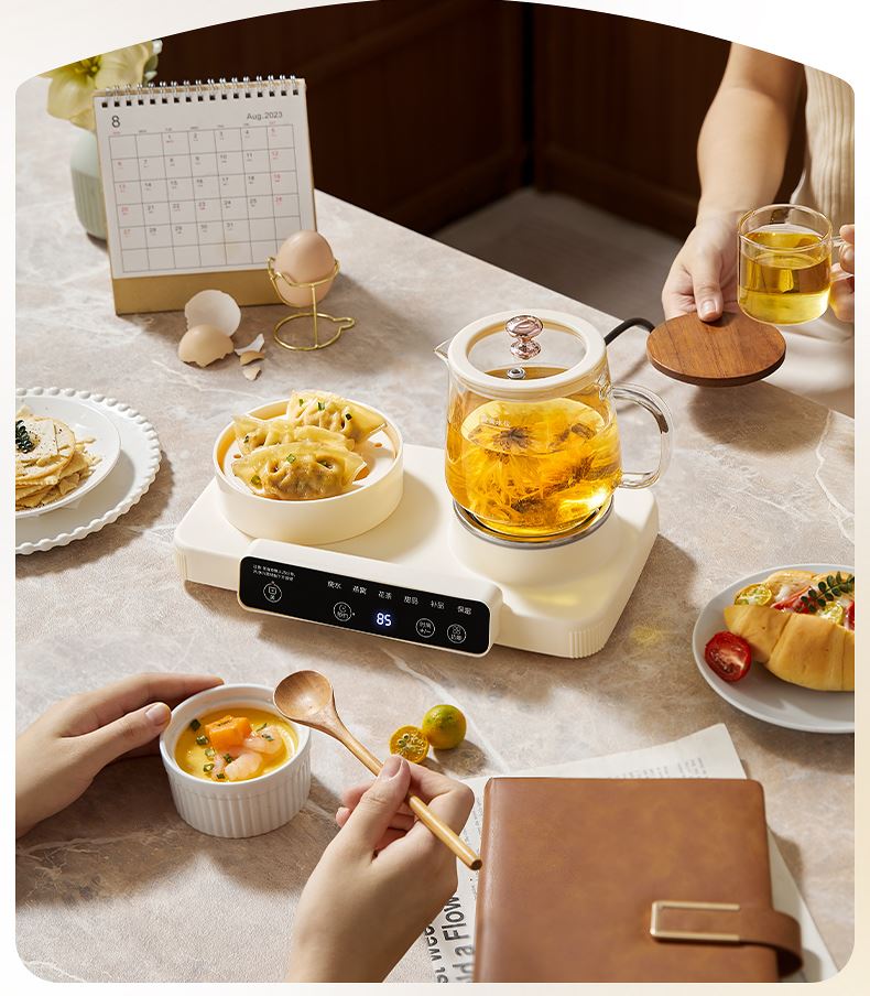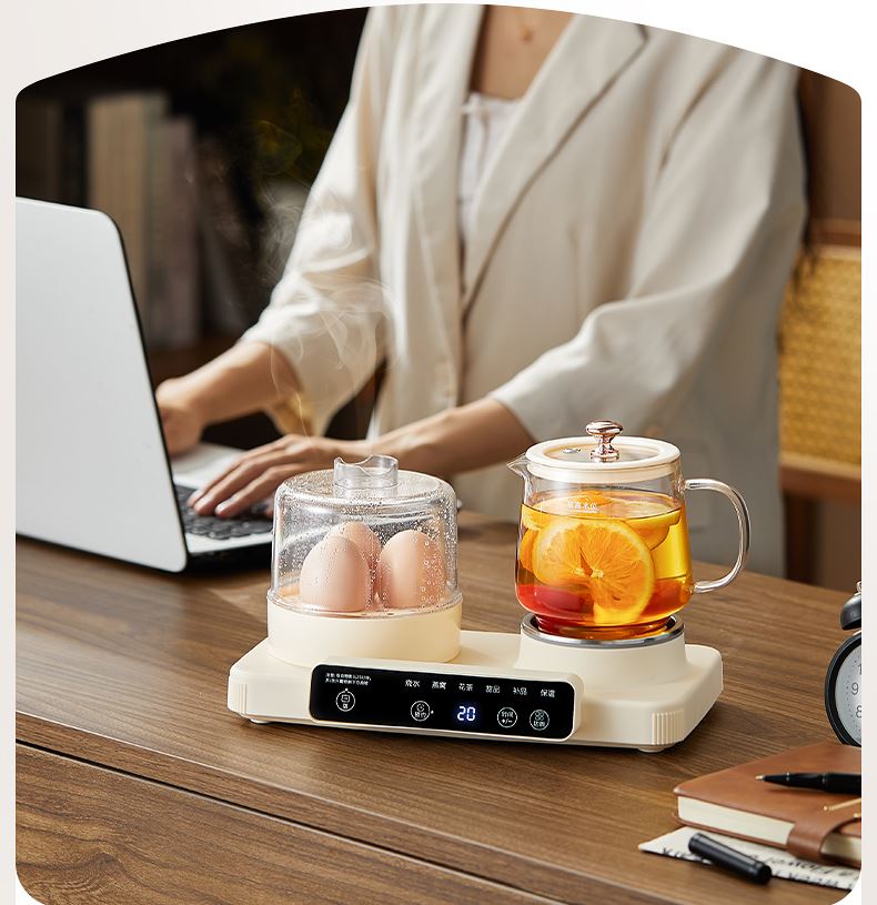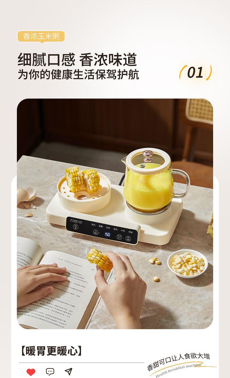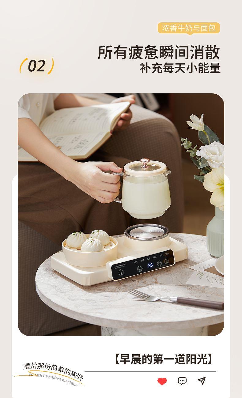 额定功率:470W 颜色:奶油白 主机容量:600ML 规格:二合一养生壶套装 产品款式:微电脑轻触操作 (带数显) 包装清单:蒸蛋架+高硼硅玻璃壶+底座 包装:彩盒包装 特色功能 1、一键蒸煮烹饪,右边炖煮同享; 2、6大预设功能,470W.炖煮更省心; 3、600ML炖煮养生杯恒温杯二合一; 4、分体式养生壶杯壶,清洗方便,提壶即饮; 5、高硼硅玻璃壶轻奢泡茶,高温防干烧自动断电; 6、轻松安装,自动断电,防干烧功能;一机多用,取下直接可用于婴儿暖奶及保温;